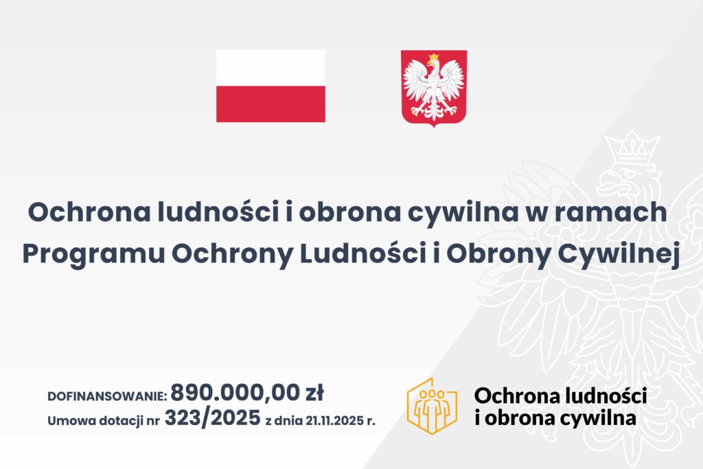 W 2025 roku Gmina Pieńsk zrealizowała zadanie pn. „Ochrona ludności i obrona cywilna” w ramach Programu Ochrony Ludności i Obrony Cywilnej w ramach umowy dotacji nr 323/2025 z dnia 21.11.2025r. na kwotę 890.000,00 złotych.