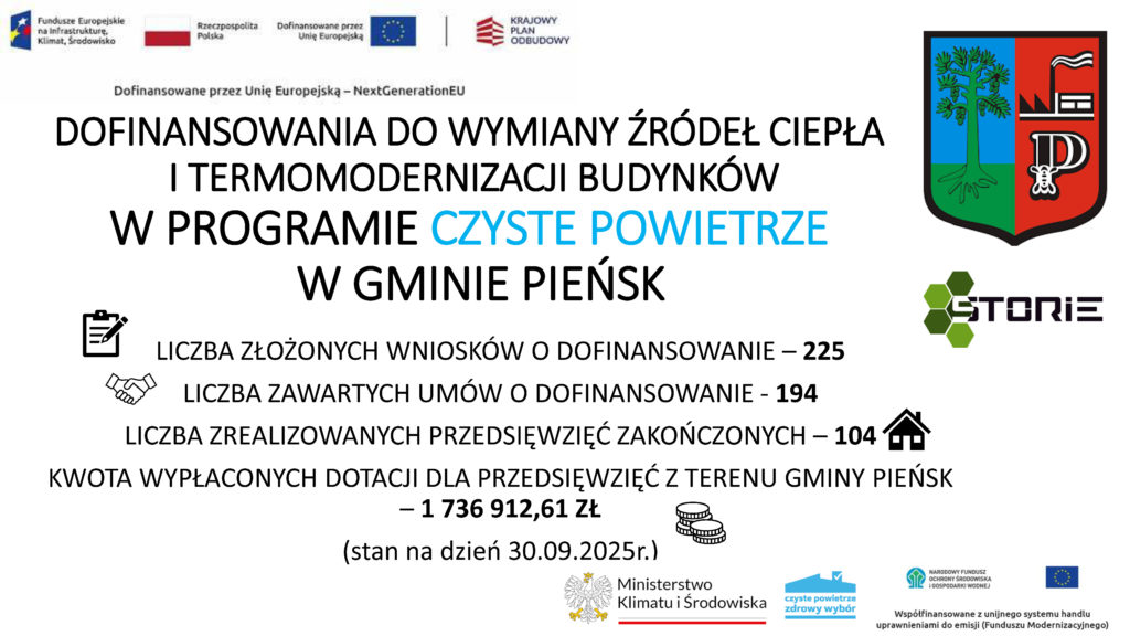 Home / PROJEKTY w Gminie / CZYSTE POWIETRZE / Dane o programie Czyste Powietrze – stan na 30.09.2025r.: